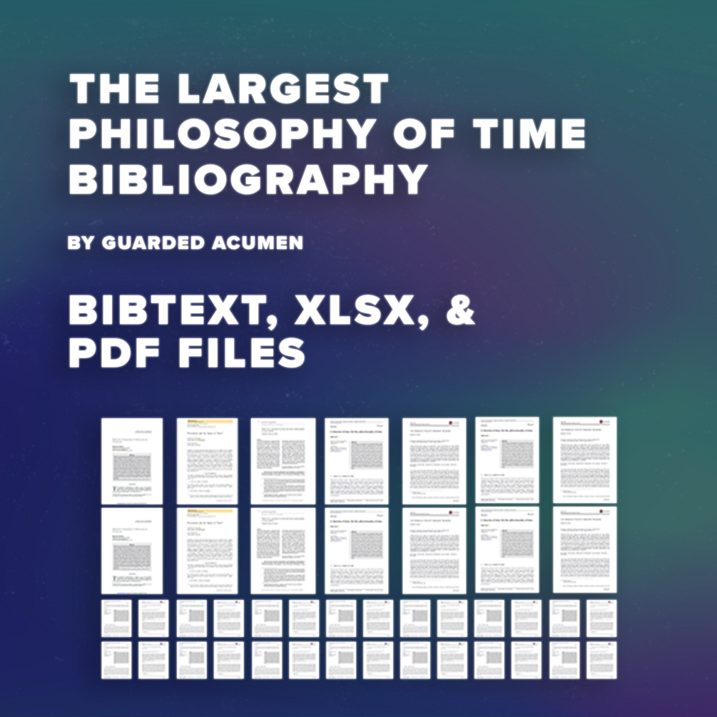 The 'Guarded Acumen Philosophy of Time Bibliography' will help you master philosophy of time faster than you thought was originally possible. It's over 800 entries of scholarly articles, with added citation data (e.g. DOI's, ISSN's, and publisher titles). It is the definitive bibliography to philosophy of time.